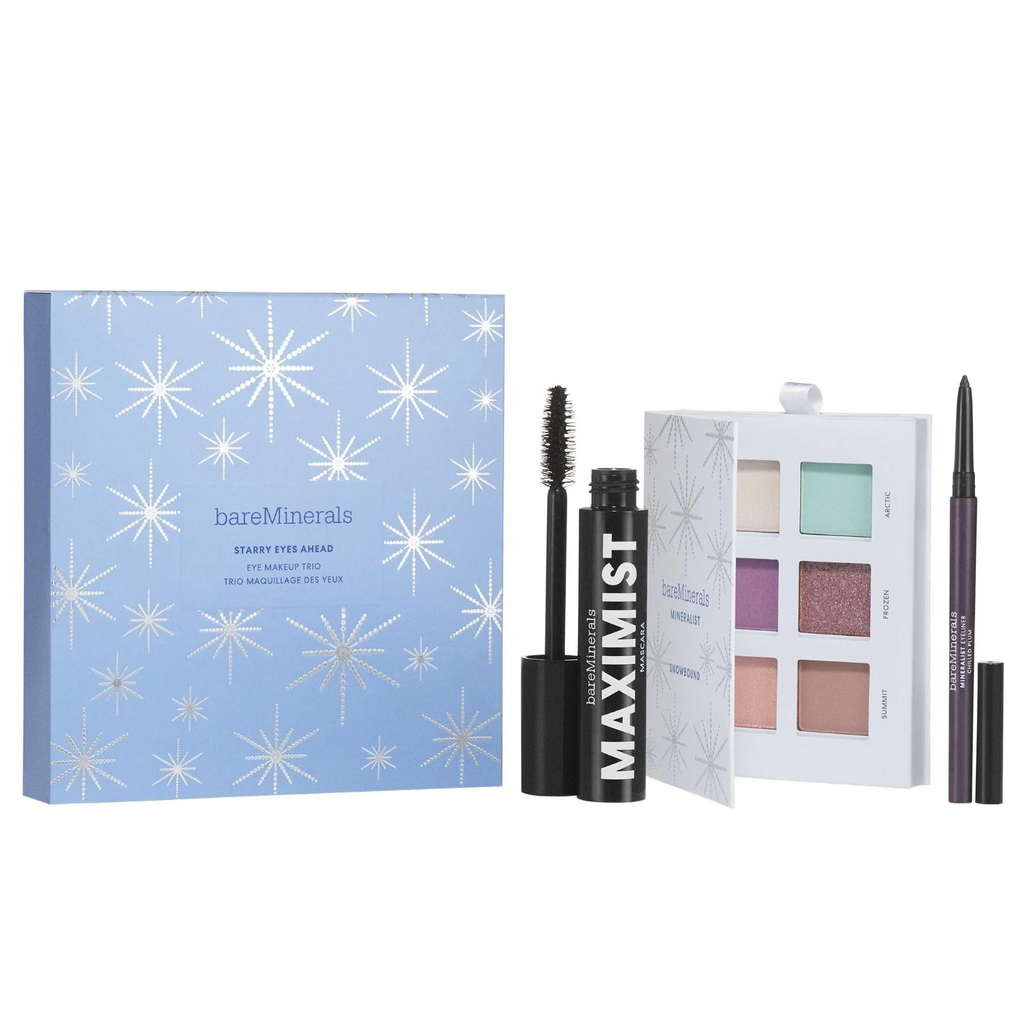 Creëer de meest uiteenlopende feestlooks met dit feestelijke fullsize oogtrio bestaande uit een gloednieuw limited-edition oogschaduwpalet met supercoole kleuren, ons oogpotlood met mineralen in een nieuwe intense pruimkleur en onze nieuwe volumemascara.