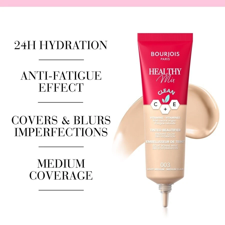 Bourjois Getinte Verfraaier Gezonde Mix, Langdurige Uniformerende Gekleurde Vochtinbrengende Crème, met vitamine C & E van natuurlijke oorsprong.