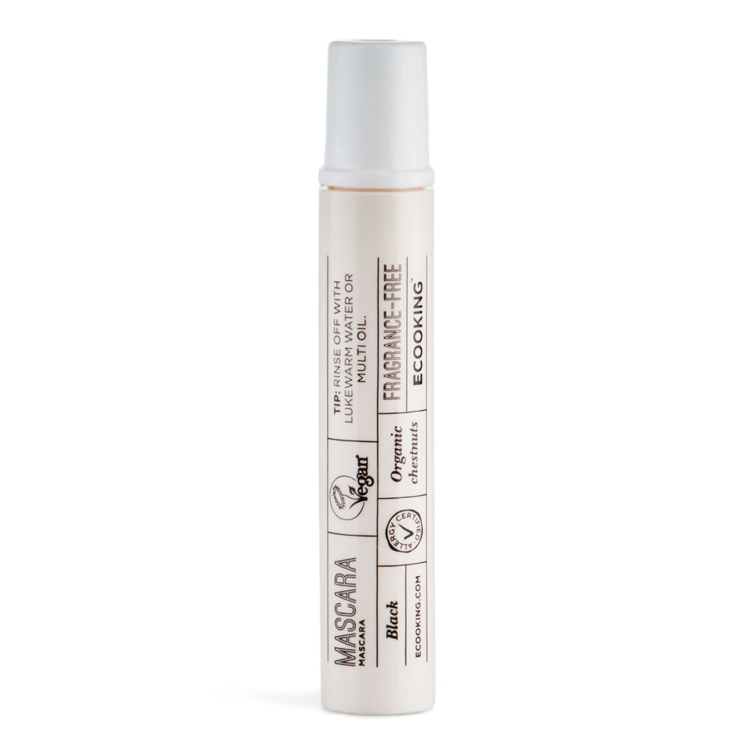 De Ecooking Mascara heeft een intens zwarte formule en is verrijkt met Vitamine E en Kastanje-olie. De kastanje-olie herstelt en verzorgt de wimpers, waar de Vitamine E de wimpers juist beschermd tegen invloeden van buitenaf. Daarnaast is de mascara AllergyCertified en dermatologisch getest, waardoor werkelijk iedereen deze mascra kan gebruiken.