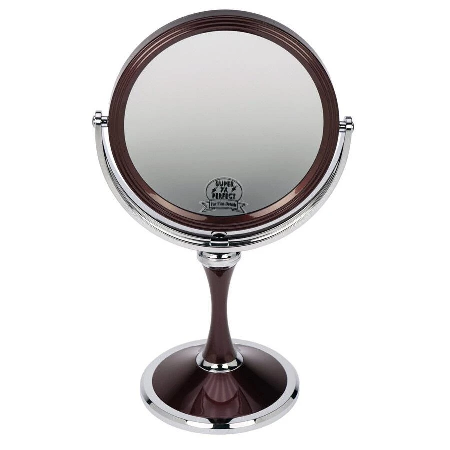 Stelspiegel kunsstof metaalkleur met 7x vergroting, achterkant 1x vergrotend, doorsnede 17,5 cm, hoogte 34 cm