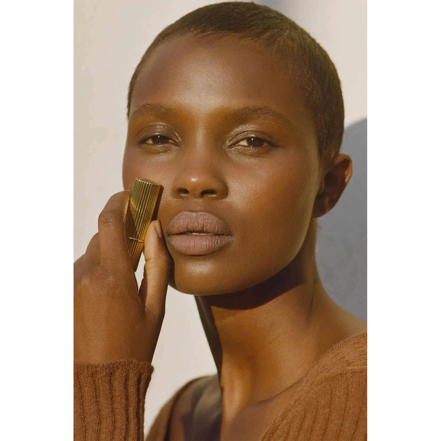 De Parisienne’s essentieel? Haar bruine lippenstift. Een romige textuur, matte afwerking met een hoge dekking. Altijd in haar handtas, in één streek “un peu de Rouje, et voilà !”