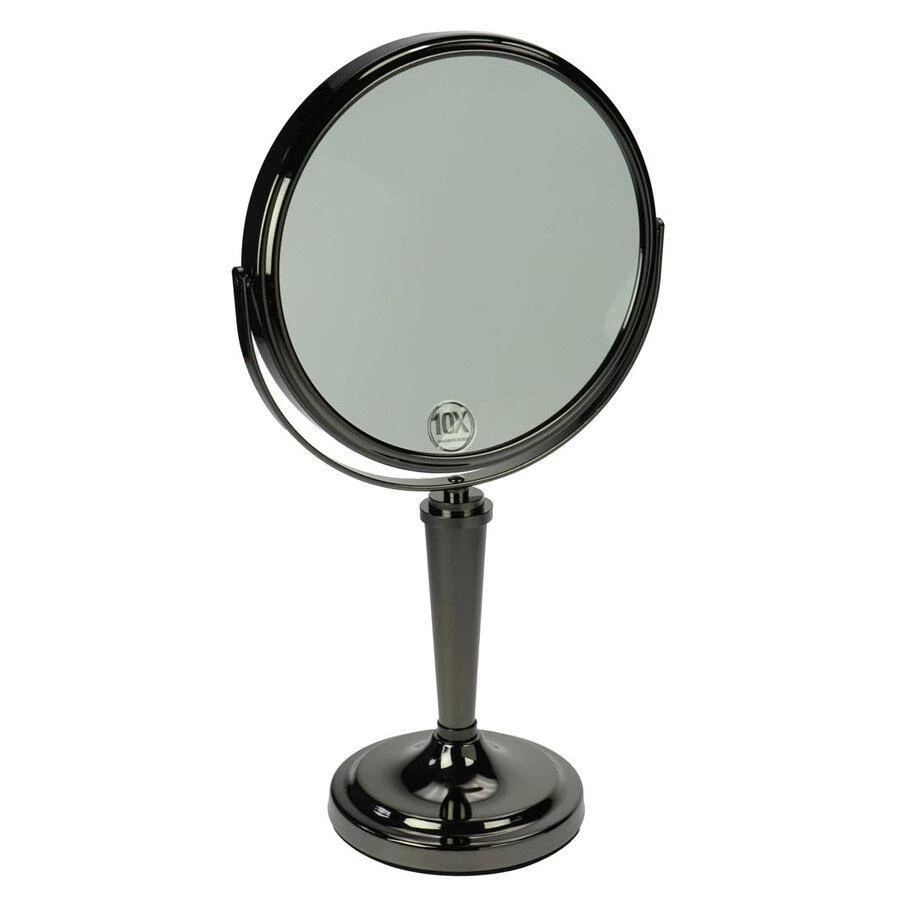 Stelspiegel metaal antraciet met 10x vergroting, achterkant 1 x vergrotend, doorsnede 20,5 cm, hoogte 39,5 cm