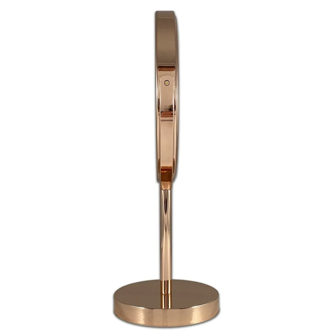 Bent u nog op zoek naar een fijne en betaalbare stand spiegel? Dan hebben wij het product wat u zoekt. Namelijk deze Make-up Spiegel met een doorsnee van 18 centimeter. De Make-up Spiegel beschikt ook over een 10 maal vergrotende kant zodat u alle details extra goed kunt zien. U kunt de Make-up Spiegel helemaal te roteren zodat u makkelijk kunt switchen tussen de normale en vergrotende kant. De Make-up spiegel is gemaakt van hoogwaardige kwaliteit metaal waardoor deze niet snel zal krassen, slijten of roesten, ook de levensduur word hierdoor aanzienlijk verlengd. Het mooie gouden uiterlijk zorgt ervoor dat dit product strak, hip en tijdloos is waardoor deze overal mooi tot zijn recht zal komen. De onderkant is voorzien van schuimrubber wat zorgt voor extra grip en voorkomt krassen op bijvoorbeeld uw badkamer meubel, tafel of kast.