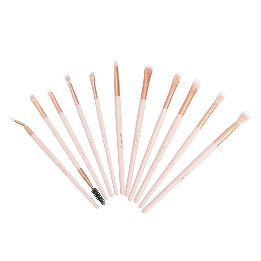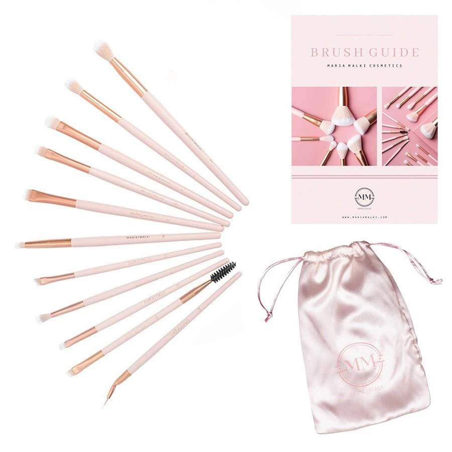 Deze 11 delige set bevat penselen voor: Wenkbrauwen, Eyeliner en diverse andere oogmake-up penselen. Inclusief Brush guide & faux silk opberg zakje.