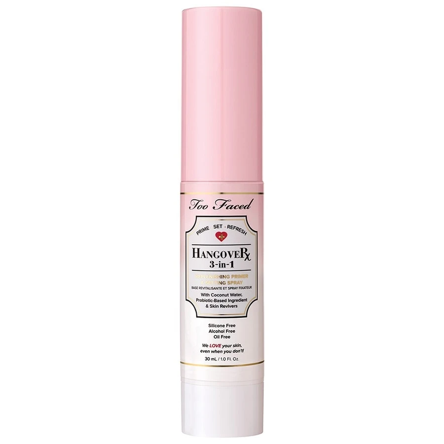 Blijf fris en vlekkeloos met dit handige reisformaat van Too Faced’s iconische, gewichtloze 3-in-1 Hangover Replenishing Primer & Setting Spray. Deze met kokoswater doordrenkte mist die make-up voorbereid, verstevigt en verfrist, terwijl het helpt om de huid gehydrateerd te houden.